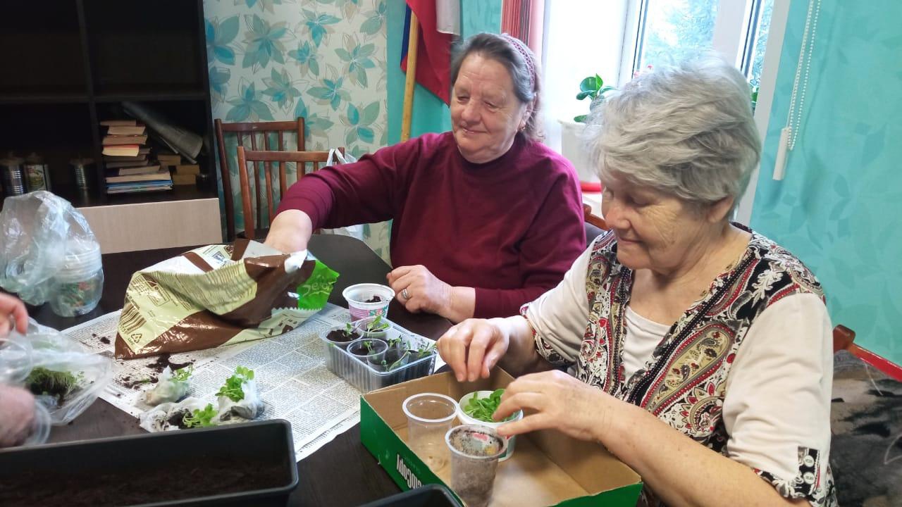 Сегодня отдыхающие отделения дневного пребывания начали рассаживать Петунию.